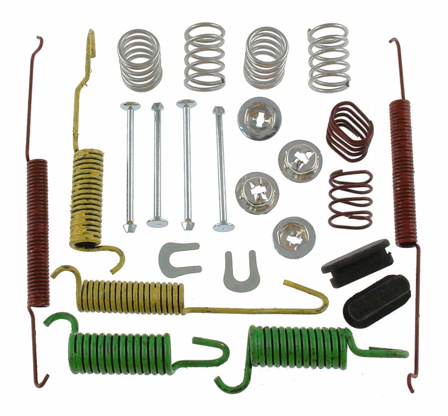 Hardware consists of a variety of parts designed to assist in restoring your brake system such as, Anti-rattle clips, seals, pins, and dust boots along with drum shoe return springs, hold down springs, and adjuster assemblies, help to maintain consistent, balanced braking. Change your hardware with the brake shoes to ensure maximum performance. Industry experts agree - When brake friction materials are ready to be replaced, the hardware should also be replaced.
